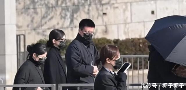 追悼会当天,唐嫣身着一件黑色羊毛大衣,戴着黑框眼镜,整体打扮显得低调而庄重。