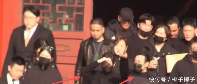 两人肩并肩从八宝山走出,都身着一身黑衣,打扮得十分般配。